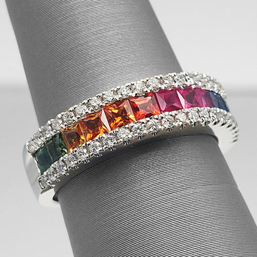 Diamond, Gold & Multi-Color Sapphire Ring