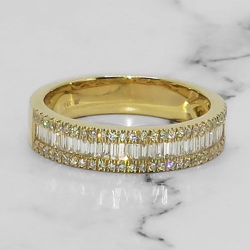 Gold Ring With Round & Baguette Diamonds